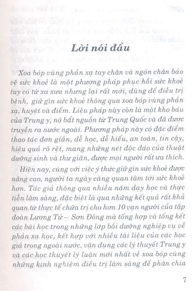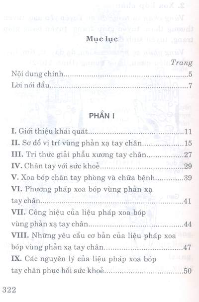 Cuốn sách giới thiệu những kiến thức cơ bản về liệu pháp xoa bóp tay chân và nguồn gốc lịch sử của nó. Ngoài ra, còn giới thiệu một cách hệ thống những nguyên lý cơ bản và tác dụng của liệu pháp này, giới thiệu cách xoa bóp, các vị trí cùng phương pháp và nguyên tắc xoa bóp chẩn đoán bệnh.