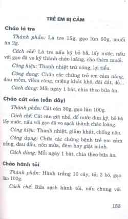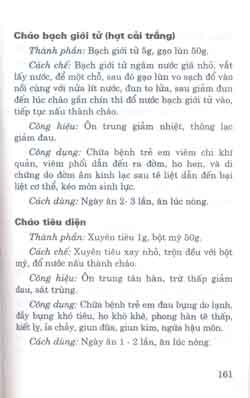 Các bài cháo thuốc trị các bệnh: đường hô hấp, tiêu hóa, bệnh đái tháo đường..... Mỗi bài nêu rõ: thành phần, cách chế, công hiệu, công dụng, cách dùng, được trình bày rất dễ hiểu để bạn đọc tiện theo dõi và áp dụng.
