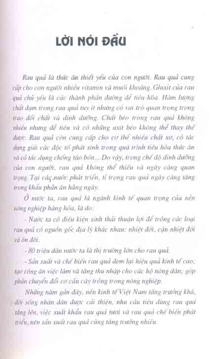 Cuốn sách cung cấp những kiến thức cơ bản và những vân sđề cụ thể trong công nghệ bảo quản và chế biến rau quả. Những công nghệ đề cập đến là những công nghệ tiên tiến và có điều kiện áp dụng ở nước ta.