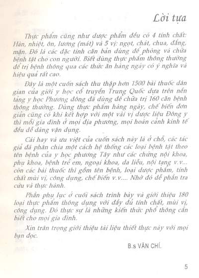 Phần phụ lục cuối sách trình bày và giới thiệu 180 loại thực phẩm thông dụng với đầy đủ tính chất, mùi vị, công dụng.