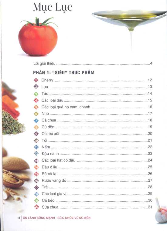 - Phần 2: Đề cập đến 50 bệnh phổ biến- từ hen suyễn, đau nửa đầu đến tim mạch, viêm thấp khớp- đồng thời nêu rõ loại thực phẩm nào có lợi cho sức khỏe và thực phẩm nào cần tránh.