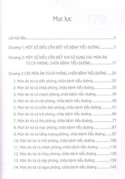 - Chương II: Các món ăn từ cá phòng, chữa bệnh tiểu đường.