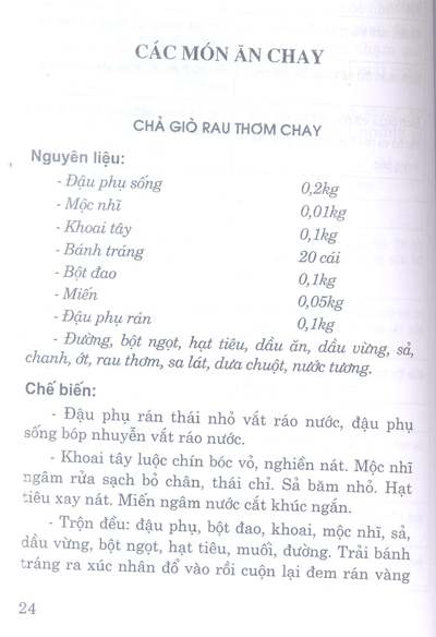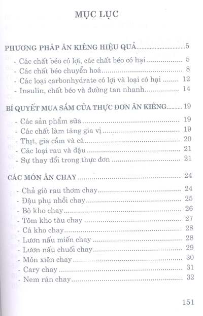 - Thực đơn cho người ăn kiêng, người béo phì: Các món ăn chay, các món chè, các món cháo, sa- lát, các món canh- súp, các món ăn từ ngũ cốc và các món ăn khác.