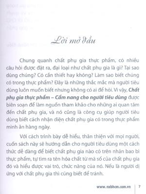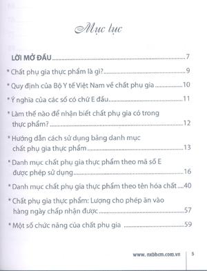 Cuốn sách được biên soạn để làm nguồn tham khảo cho những ai quan tâm đến chất phụ gia, và nó cung là công cụ giúp người tiêu dùng biết cách nhận diện chất phụ gia có trong thực phẩm mình ăn hàng ngày.