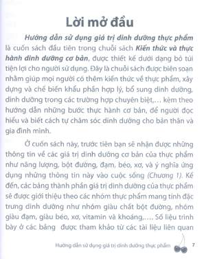 Sách giúp bạn hiểu và ứng dụng các giá trị dinh dưỡng của thực phẩm vào đời sống. Giúp bạn biết ước tính nhanh giá trị dinh dưỡng của thực phẩm thông qua bảng thành phần giá trị dinh dưỡng của những thực phẩm quen thuộc, với các đơn vị đo lường thông dụng tại chợ cũng như tại nhà.
