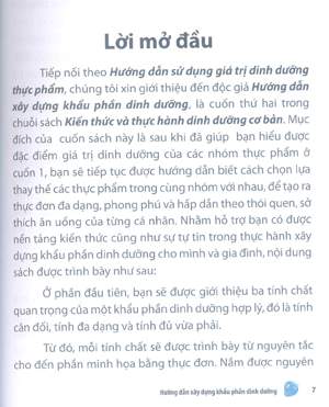 Đây là cuốn sách đầu tiên trong chuỗi sách “Kiến thức và thực hành dinh dưỡng cơ bản”, được trình bày dưới dạng bỏ túi tiện lợi cho người sử dụng, để tại bếp hoặc mang theo bên mình.