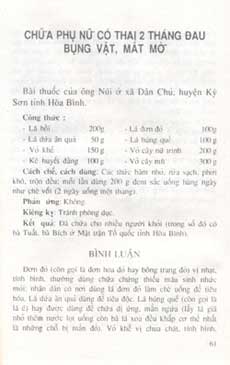 Cuốn sách tập hợp và chọn lọc được 90 bài thuốc kinh nghiệm của các ông lang bà mế miền núi ở 2 tỉnh Hòa Bình và Hà Tây.