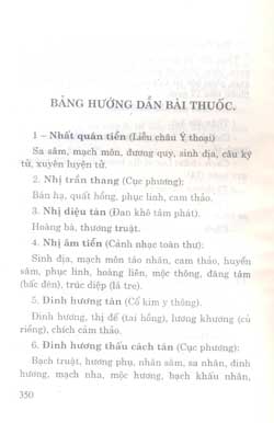 Thêm vào đó, cuốn sách có thêm bảng hướng dẫn bài thuốc: liệt kê các bài thuốc cùng thành phần các vị thuốc có trong bài để bạn đọc tiện tra cứu.
