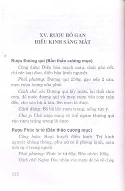 Cuốn sách giới thiệu hơn 500 bài thuốc rượu bổ. Công hiệu, phương thuốc, cách pha chế, ứng dụng, cấm kỵ của phương thuốc cổ thì được dẫn dùng theo y như cũ. Đồng thời, với các kiến thức của y học hiện đại và dưỡng sinh học, sách có thêm phần chú giải để độc giả có thể áp dụng cho bản thân tốt hơn. Thêm vào đó, sách còn giới thiệu tóm tắt các vị thuốc Đông y thường dùng cho chế rượu.