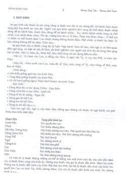 - Phần đầu: Cung cấp các kiến thức chung về Đông dược: Lịch sử Đông dược; Cách đặt tên thuốc; Phân loại thuốc; Thu hái, cất giữ bảo quản; Tính năng dược vật (tứ khí, ngũ vị; tác dụng điều trị, phối ngũ, cấm kỵ...); Bào chế Đông dược.