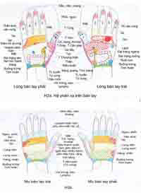 Các khu phản xạ bàn chân, bàn tay thể hiện sự tương đồng giữa cấu trúc cơ thể với hệ thống huyệt vị phản chiếu ở bàn chân, bàn tay. Sơ đồ phản xạ bàn chân, bàn tay được ứng dụng chữa bệnh rộng rãi. Khi bệnh phát sinh tại một cơ quan, bộ phận nào đó, nếu điểm phản chiếu được day ấn hết đau thì việc chữa bệnh có thể đạt hiệu quả cao.