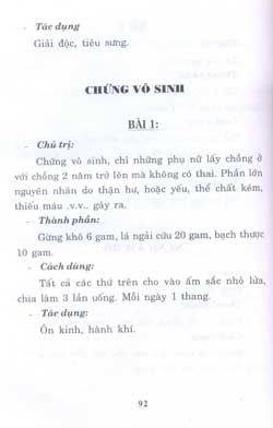 - Phần 3: Vị thuốc kỳ diệu chữa bệnh phụ nữ với các chứng bệnh hay gặp như: đau bụng, đau lưng khi có kinh; kinh nguyệt không đều; buồn nôn khi mang thai; bạc tóc; rụng lông mày....