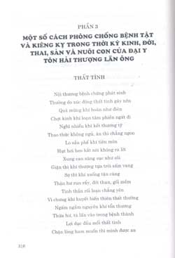 - Phần 3: Một số cách phòng chống bệnh tật và kiêng kỵ trong thời kỳ kinh, đới, thai, sản và nuôi con của Đại y tôn Hải Thượng Lãn Ông.