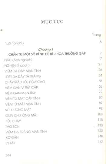 - Chương 1- Chẩn trị một số bệnh hệ tiêu hóa thường gặp, bao gồm 16 bệnh thuộc hệ thống tiêu hóa như: Nấc, nghẹn, viêm dạ dày, loét dạ dày tá tràng, viêm gan, viêm túi mật, tiêu chảy, táo bón…