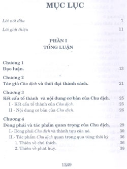 - Phần một: Tổng luận về nội dung cơ bản, nguyên lý tính chất, khởi nguồn và phát triển của Chu dịch.