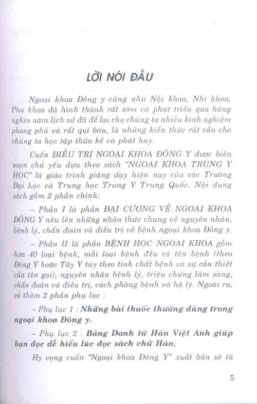 Cuốn Ngoại khoa Đông y được biên soạn chủ yếu dựa theo sách "Ngoại khoa trung y học" là giáo trình giảng dạy của các trường Đại học và Trung học Trung Y Trung Quốc. Nội dung sách gồm 2 phần chính