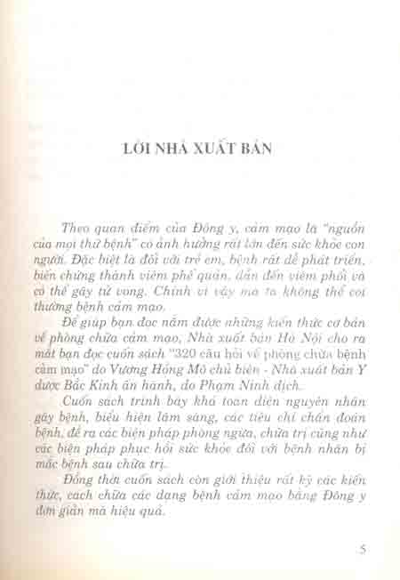 Để giúp bạn đọc nắm được những kiến thức cơ bản về phòng chữa cảm mạo, nhà xuất bản Hà Nội cho xuất bản cuốn sách 320 Câu Hỏi Về Phòng Chữa Bệnh Cảm Mạo do Vương Hồng Mô chủ biên, Nhà xuất bản Y dược Bắc Kinh ấn hành, Phạm Ninh dịch.