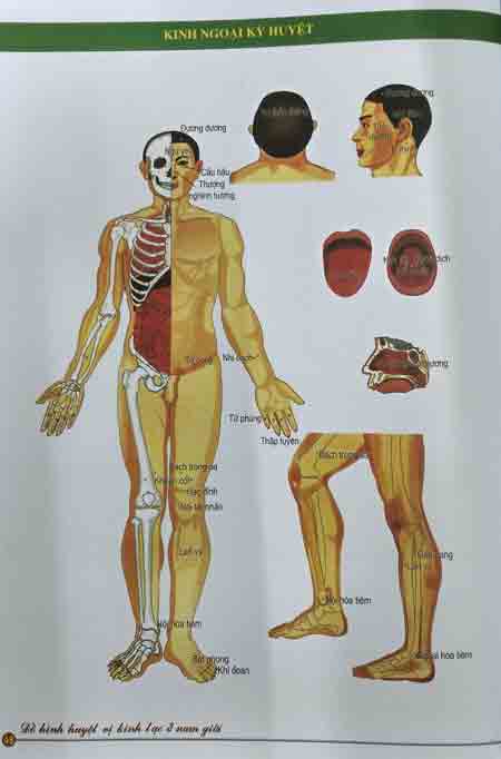 Cuốn sách giới thiệu hệ thống kinh mạch ở nam giới gồm 12 đường kinh chính xếp theo thứ tự tuần hoàn kinh khí. Ngoài ra còn có hệ thống huyệt bên ngoài đường kinh: Kinh ngoại kỳ huyệt, Nhĩ huyệt, Khu phản xạ ở bàn tay.