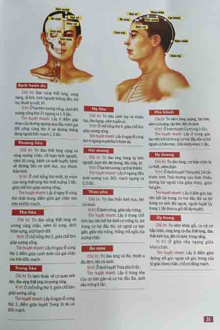 Trong mỗi hệ thống kinh lạc, toàn bộ huyệt vị đều được giới thiệu trên các phương diện tên gọi, vị trí và chủ trị, đồng thời kèm theo hình ảnh minh họa rõ nét. Điều này giúp bạn đọc có thể dễ dàng theo dõi, tìm đúng vị trí huyệt vị, hình dung được đường đi của kinh mạch, lạc mạch cũng như các bệnh tương ứng có thể chữa trị khi tác động vào huyệt vị kinh lạc đấy.