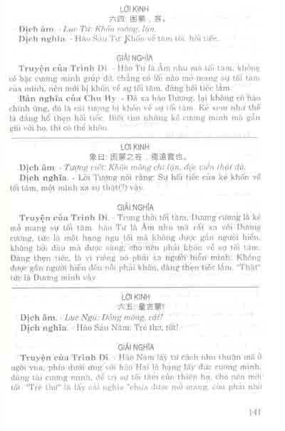 Cuốn Kinh Dịch của cụ Ngô Tất Tố chuyên sâu và gần với dịch gốc, được giới học Dịch đánh giá rất cao. Cuốn này được thầy Trình Di và Chu Hy là hai “tay” cự phách của Nho giáo bình chú.