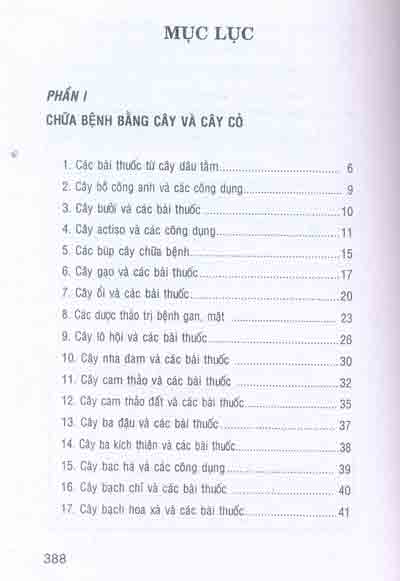 - Phần I- Chữa bệnh bằng cây và cây cỏ: Giới thiệu gần 100 loại cây cỏ và các bài thuốc, công dụng của từng loại.