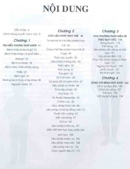 - Chương 2- Các liệu pháp thay thế: Bàn về các liệu pháp thay thế khác nhau và trình bày nguyên lý, tính thích đáng của mỗi liệu pháp đối với những chứng thấp khớp khác nhau.