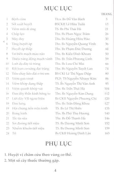 - Phần phụ lục có hình ảnh màu một số vị thuốc, một số huyệt vị thường hay sử dụng để bạn đọc tham khảo.