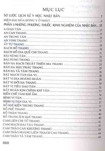 - Phần I: Giới thiệu hơn 300 bài thuốc kinh nghiệm độc đáo của Nhật Bản cũng như những cổ phương mà người Nhật đã thừa kế, phát huy. Nhìn chung, đa số các bài thuốc đều dựa trên nền các bài cổ phương, nhất là sách "Thương hàn luận" và "Kim quỹ yếu lược". Một số bài tuy là cổ phương nhưng đã được các thầy thuốc Nhật Bản kinh qua sử dụng và phát huy. Các bài thuốc này, đa số được dịch trong "Nhật Bản Hán y danh phương tuyển" của Vương Khánh Quốc, Nhà xuất bản KHKT Bắc Kinh in năm 1992 và "Hán phương chẩn liệu thực tế".