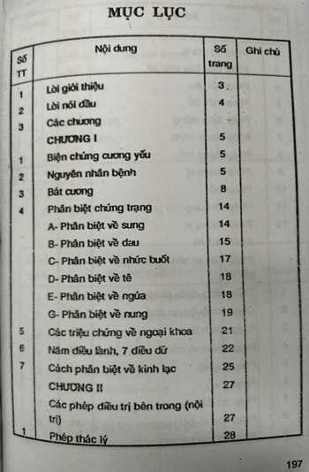 - Chương I: Trình bày lý luận Đông y về ngoại khoa: Biện chứng cương yếu, nguyên nhân gây bệnh, phân biệt chứng trạng, các triệu chứng của ngoại khoa…
