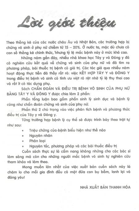 Cuốn sách thực sự là cẩm nang không những cho các bác sĩ lâm sàng mà còn cho những người mắc bệnh vô sinh tự nghiên cứu, tham khảo và làm theo.