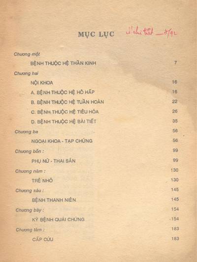 - Chương II: Nội khoa: hệ hô hấp, hệ tuần hoàn, hệ tiêu hóa, hệ bài tiết