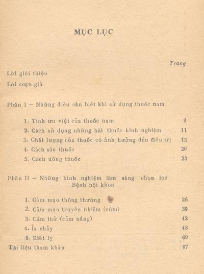 - Phần II: Những kinh nghiệm lâm sàng chọn lọc chữa một số bệnh nội khoa: Cảm mạo thông thường, cảm mạo truyền nhiễm, cảm thử, ỉa chảy…