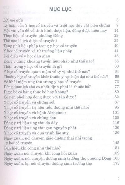 Gồm gần 60 vấn đề được trình bày dưới dạng hỏi đáp: Lý luận của Y học Cổ truyền và triết học duy vật biện chứng, tình hình Dược liệu, Trà dược Cổ truyền, Thận trong YHCT, có nên phối hợp Đông dược với Tân dược?...