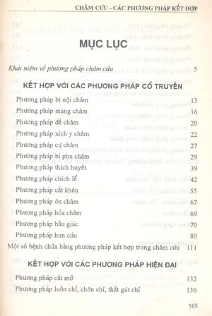 - Châm cứu kết hợp với các phương pháp cổ truyền (13 phương pháp) và một số bệnh chữa bằng phương pháp kết hợp trong châm cứu.