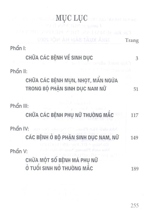 - Phần V: Chữa một số bệnh mà phụ nữ ở độ tuổi sinh nở thường mắc.