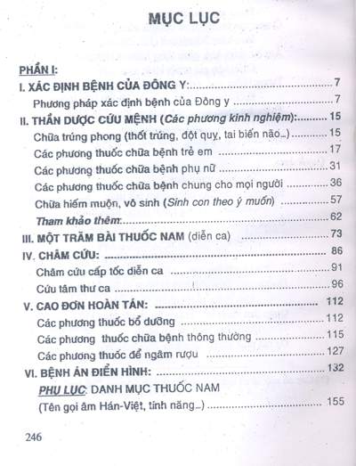 - Phần I: Phương pháp xác định bệnh của Đông y, Các phương kinh nghiệm, diễn ca 100 bài thuốc Nam, Châm cứu, Bệnh án điển hình…