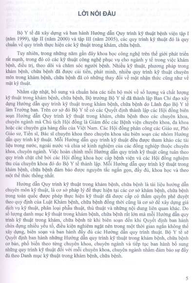 Hướng dẫn Quy trình kỹ thuật trong khám bệnh, chữa bệnh là tài liệu hướng dẫn chuyên môn kỹ thuật, là cơ sở pháp lý để thực hiện tại các cơ sở khám bệnh, chữa bệnh trong toàn quốc được phép thực hiện kỹ thuật đã được cấp có thẩm quyền phê duyệt theo quy định của Luật Khám bệnh, chữa bệnh đồng thời cũng là cơ sở để xây dựng giá dịch vụ kỹ thuật, phân loại phẫu thuật, thủ thuật và những nội dung liên quan khác.