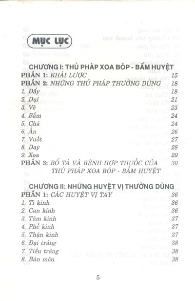 - Chương I: Thủ pháp xoa bóp – bấm huyệt.
