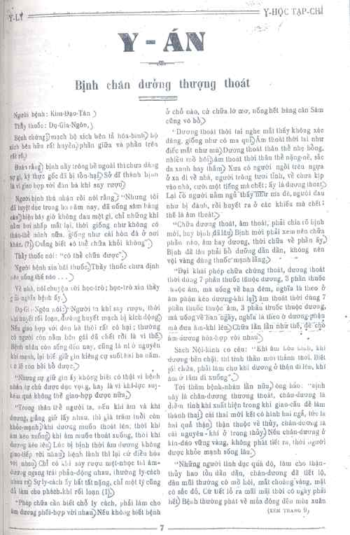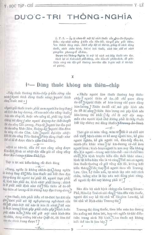 Quyển sách này tập hợp 10 số tạp chí đầu tiên (năm 1937), mỗi số đều có rất nhiều bài viết hay, tâm đắc, được chia thành các mục: Tạp trợ, Thường thức, Nam dược, Y lý, Luận thuyết.