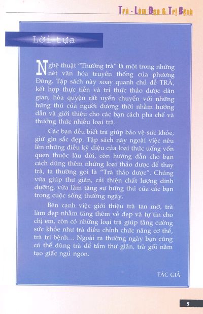 Tập sách này xoay quanh chủ đề trà, kết hợp thực tiễn và trị thức thảo dược dân gian, hòa quyện rất uyển chuyển với những hứng thú của người đương thời nhằm hướng dẫn và giới thiệu cho các bạn cách pha chế và thưởng thức nhiều loại trà.