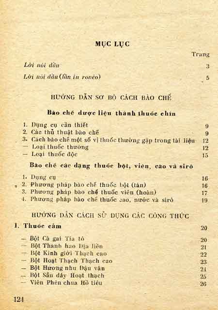 - Hướng dẫn sơ bộ cách bào chế: Bào chế Dược liêu thành thuốc chín; Bào chế các dạng thuốc bột, viên, cao và siro