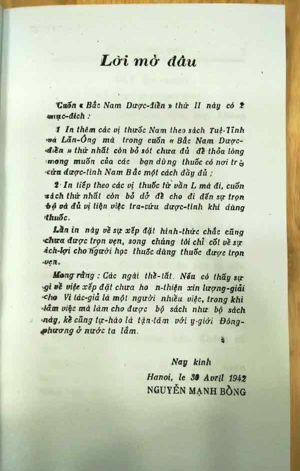 In thêm các vị thuốc Nam theo sách Tuệ Linh và Lãn Ông mà trong cuốn “Bắc Nam dược điển” thứ nhất chưa đủ để độc giả dùng thuốc có nơi tra cứu dược – tính Nam Bắc 1 cách đầy đủ.