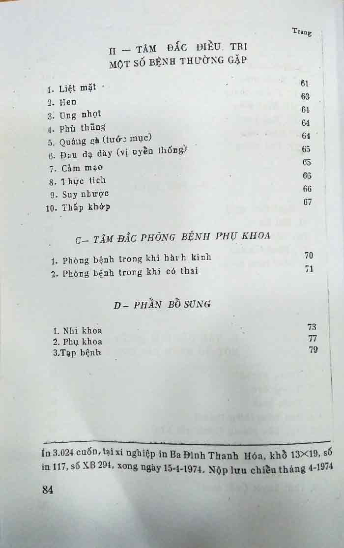 - Tâm đắc xử lý một số bệnh: Nhi khoa, phụ khoa, tạp bệnh ( bệnh cấp cứu, bệnh thường gặp), phụ khoa, bổ sung.