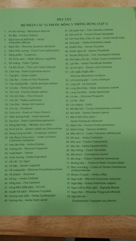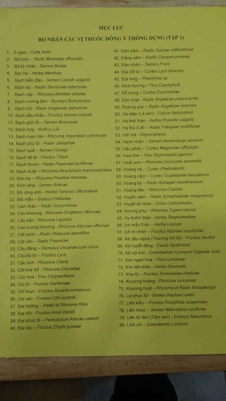 Mẫu các nhãn với 3 tên: Tên tiếng Việt (thông dụng), tên tiếng Latinh (ngôn ngữ quốc tế của ngành Động Thực vật học), tên chữ Hán phồn thể (để hiểu sâu xa ý nghĩa của từng từ, của vị thuốc) được viết tay bằng bút lông của TTND – Lương y Trần Văn Quảng..