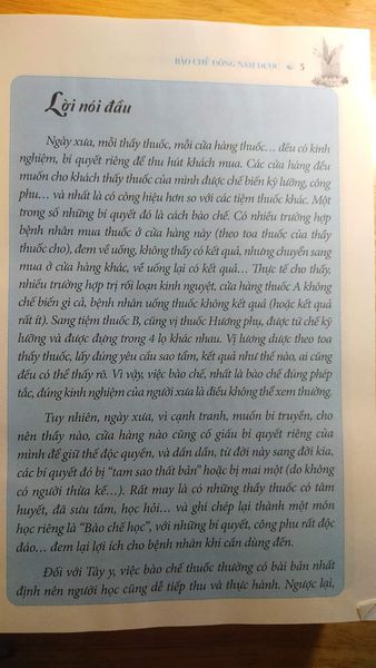 Ở Việt Nam, sách về Bào chế đông dược rất hiếm. Một phần do điều kiện nghiên cứu của chúng ta còn nhièu hạn chế, hầu hết đều dịch từ các cuốn sách của Trung Quốc. Trước nhu cầu đáp ứng tư liệu để nghiên cứu, học hỏi, các tác giả đã tổng hợp lại những kiến thức, tài liệu chuyên sâu về bào chế Đông dược của Trung Quốc và Việt Nam, biên soạn thành quyển BÀO CHẾ ĐÔNG NAM DƯỢC