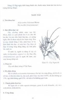- Chương III: Các cây thuốc và vị thuốc: cung cấp những kiến thức cơ bản về tên cây thuốc, vị thuốc, đặc điểm, bộ phận dùng, thành phần hóa học, tác dụng, công dụng và cách dùng của 120 cây thuốc, vị thuốc (có ảnh minh họa) được sắp xếp theo 16 nhóm bệnh khác nhau.