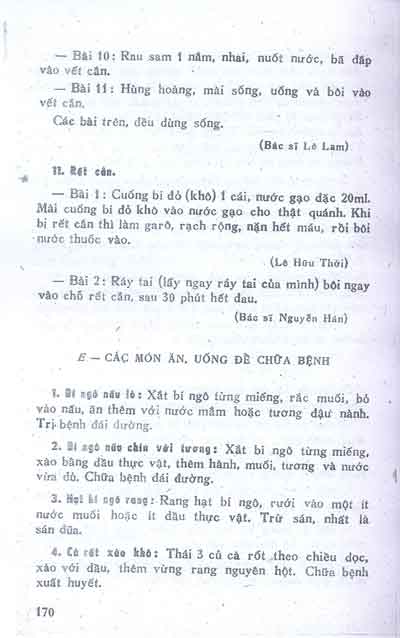 Chương hai: một số bài thuốcthông dung sắp xếp theo từng loại chứng bệnh: Bệnh nội khó (10 bệnh), bệnh truyền nhiễm (11 bệnh), bệnh ngoài da (12 bệnh), bệnh ngoại khoa-chấn thương (11 bệnh) và 31 món ăn uống đơn giản để chữa bệnh.