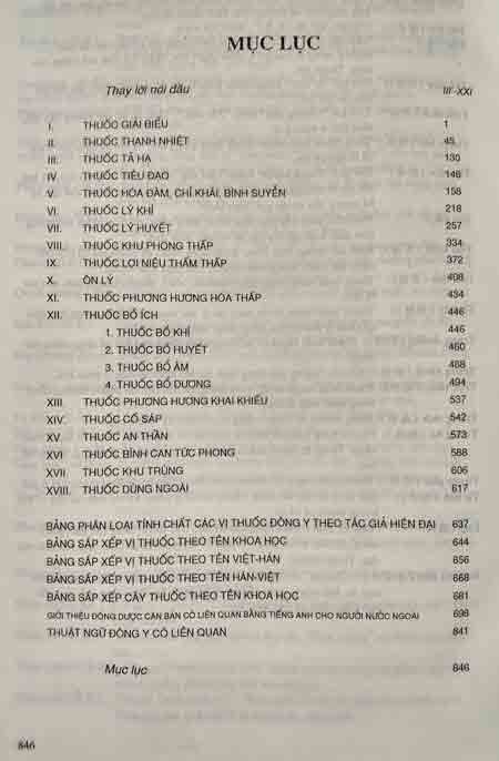- Các bảng phân loại , sắp xếp tính chất và các vị thuốc theo tác giả hiện đại, tên khoa học, tên Hán- Việt, tên Việt- Hán… để độc giả tiện tra cứu.