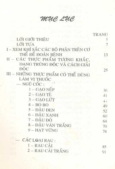 - Phần II: Các thực phẩm tương khắc, dạng trúng độc và cách giải độc