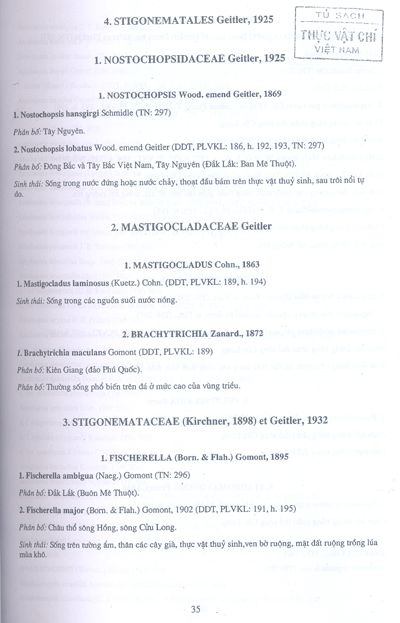 Danh lục các loài thực vật Việt Nam đã thống kê được 368 loài vi khuẩn lam, 2200 loài nấm, 2176 loài tảo, 481 loài rêu, 1 loài quyết lá thông, 53 loài thông đất, 2 loài cỏ tháp bút, 691 loài dương xỉ, 69 loài hạt trần.